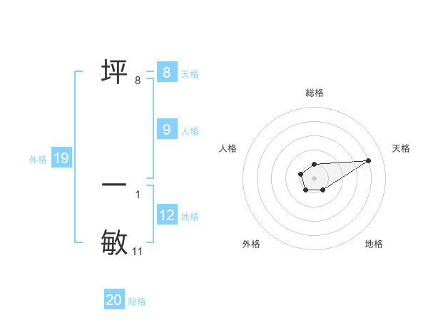 坪 一敏さんの総格は20画の1点!