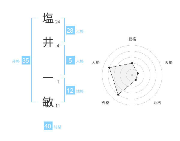 塩井 一敏さんを姓名の画数から五運を鑑定