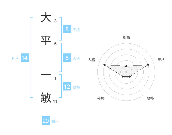 大平 一敏さんの総格は20画の1点!