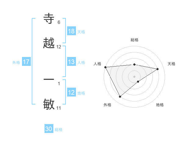 寺越 一敏さんを姓名の画数から五運を鑑定