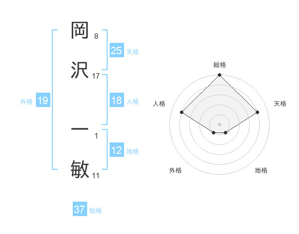岡沢 一敏さんの総格は37画の5点!