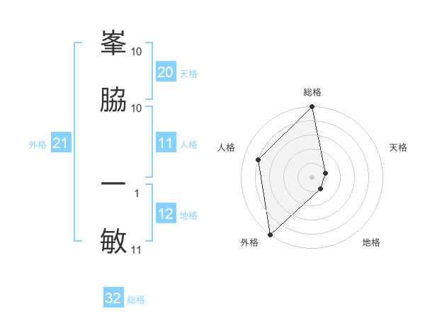 峯脇 一敏さんの外格は21画の5点!