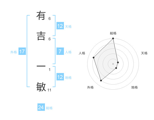 有吉 一敏さんの地格は12画の1点!