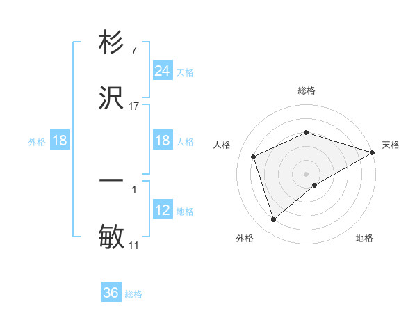 杉沢 一敏さんを姓名の画数から五運を鑑定