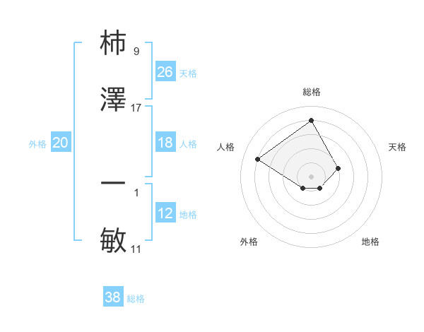 柿澤 一敏さんの総格は38画の4点!