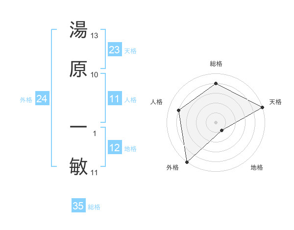 湯原 一敏さんを姓名の画数から五運を鑑定