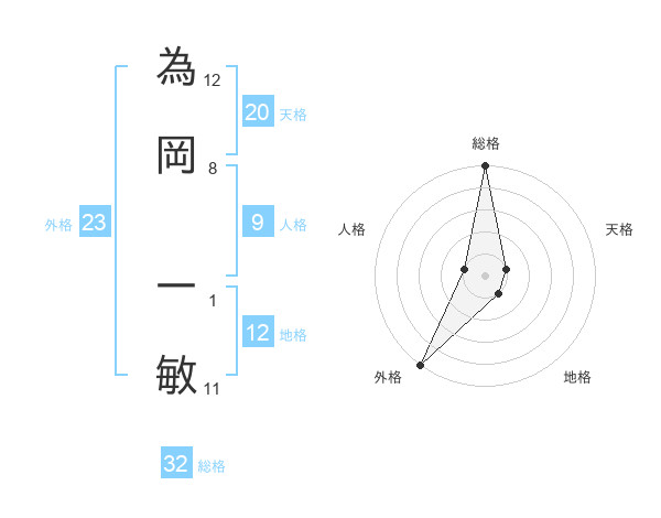為岡 一敏さんの総格は32画の5点!