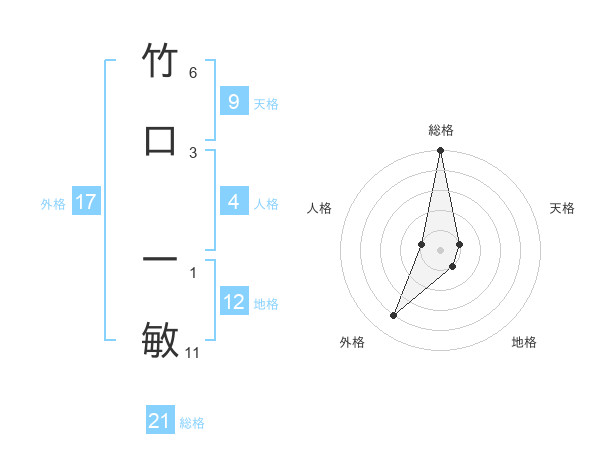 竹口 一敏さんを姓名の画数から五運を鑑定