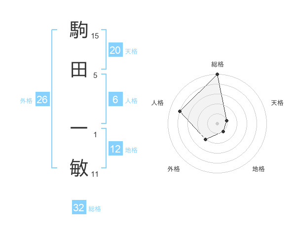 駒田 一敏さんを姓名の画数から五運を鑑定
