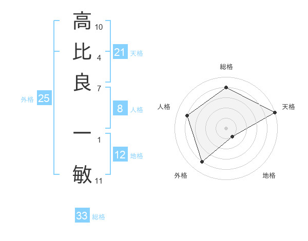 高比良 一敏さんの天格は21画の5点!