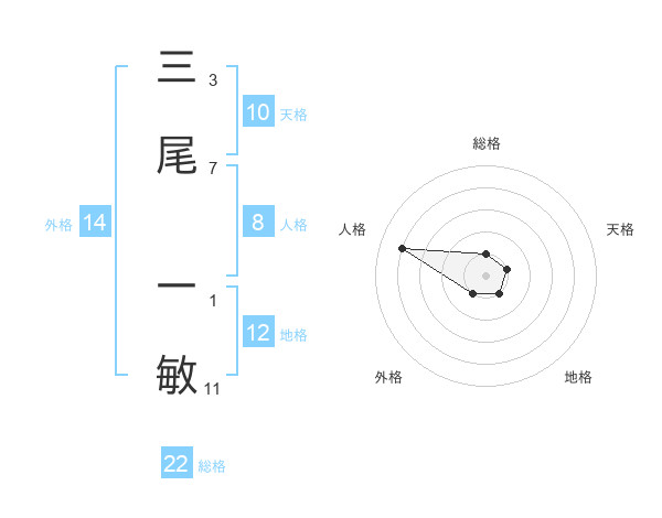 三尾 一敏さんを姓名の画数から五運を鑑定