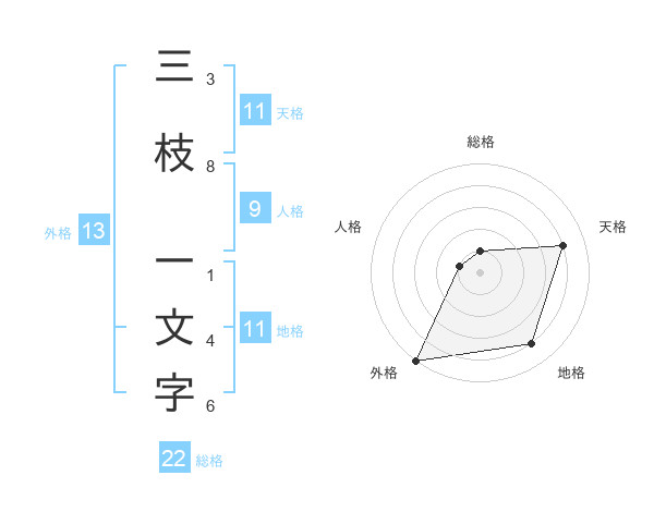 三枝 一文字さんを姓名の画数から五運を鑑定
