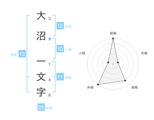 大沼 一文字さんを姓名の画数から五運を鑑定