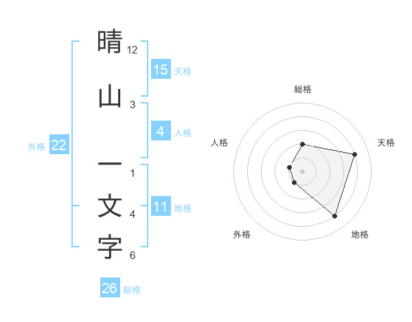 晴山 一文字さんを姓名の画数から五運を鑑定