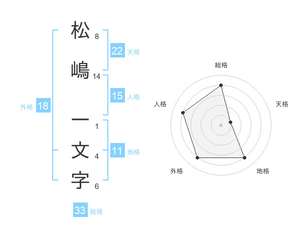 松嶋 一文字さんを姓名の画数から五運を鑑定