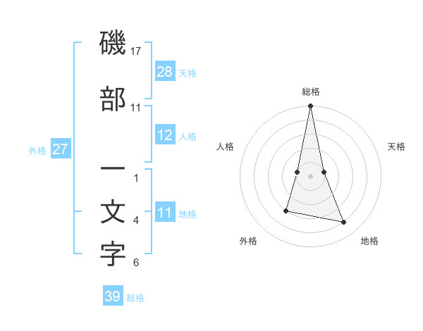 磯部 一文字さんを姓名の画数から五運を鑑定