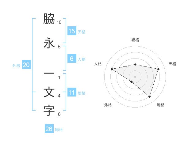 脇永 一文字さんを姓名の画数から五運を鑑定