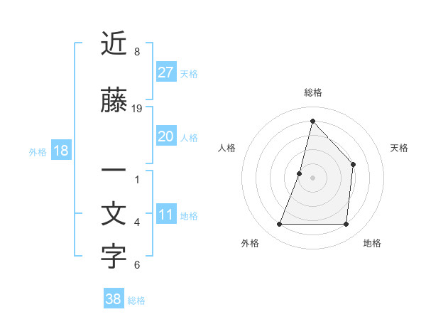 近藤 一文字さんを姓名の画数から五運を鑑定