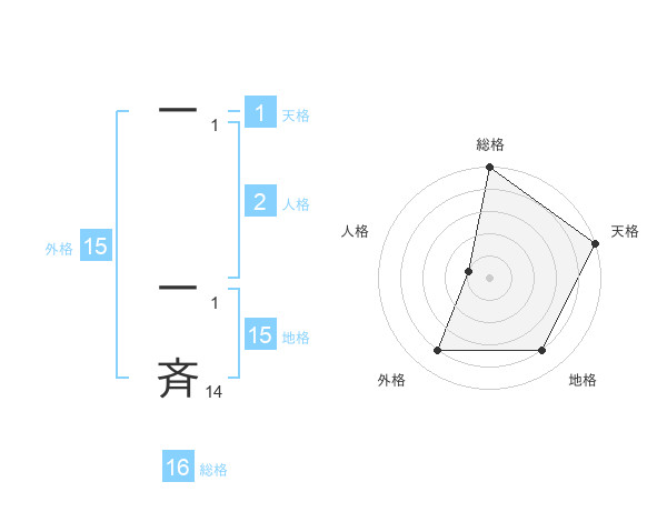 一 一斉さんの総格は16画の5点!
