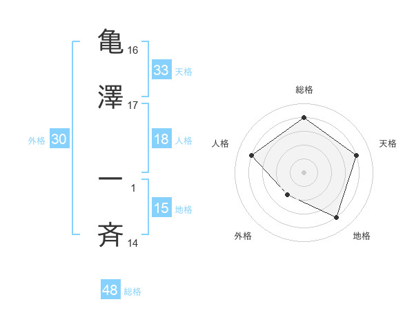 亀澤 一斉さんを姓名の画数から五運を鑑定
