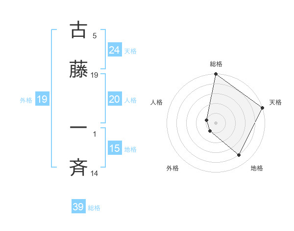 古藤 一斉さんの総格は39画の5点!