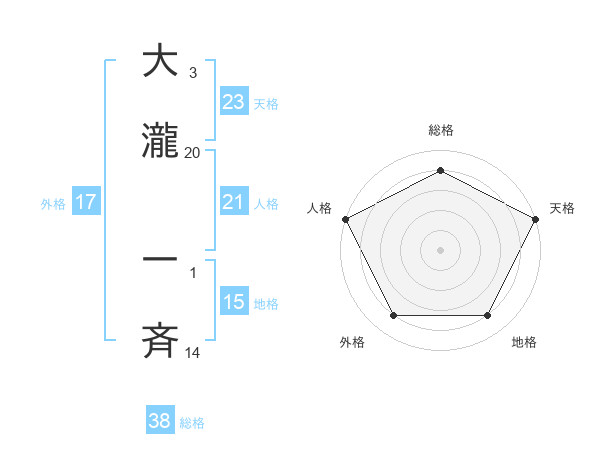 大瀧 一斉さんを姓名の画数から五運を鑑定