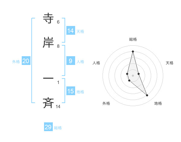 寺岸 一斉さんを姓名の画数から五運を鑑定