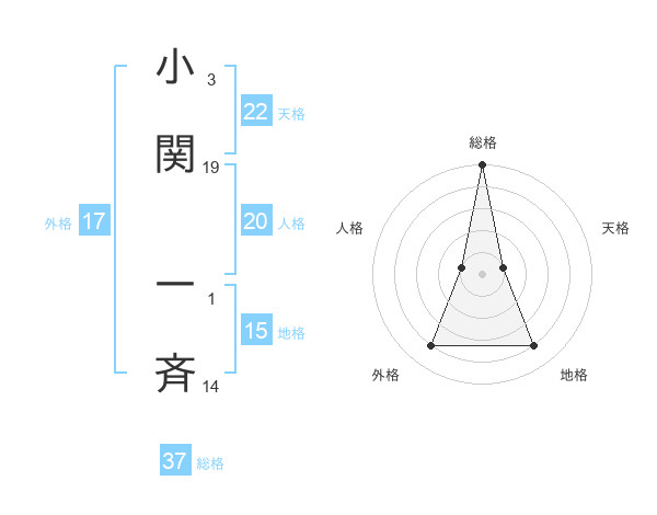 小関 一斉さんの総格は37画の5点