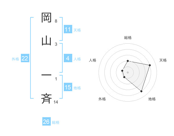 岡山 一斉さんを姓名の画数から五運を鑑定