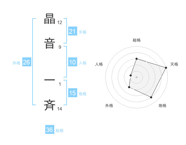 晶音 一斉さんの天格は21画の5点!