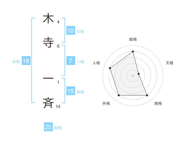 木寺 一斉さんを姓名の画数から五運を鑑定