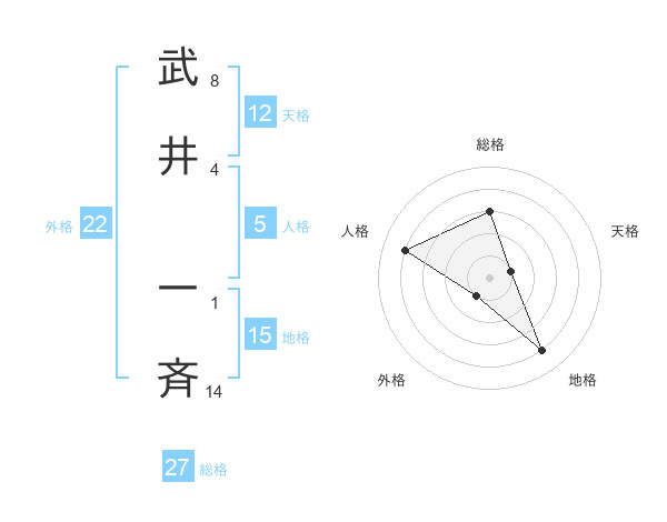 武井 一斉さんの外格は22画の1点!