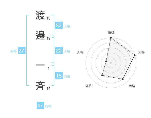 渡邊 一斉さんの総格は47画の5点!