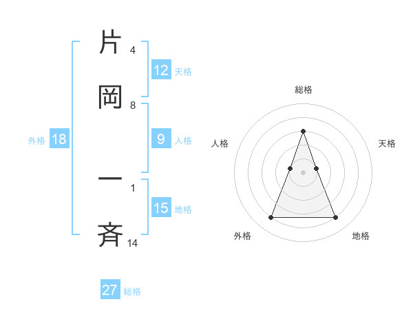 片岡 一斉さんを姓名の画数から五運を鑑定