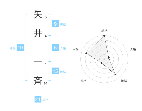 矢井 一斉さんを姓名の画数から五運を鑑定