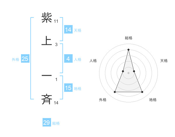 紫上 一斉さんを姓名の画数から五運を鑑定