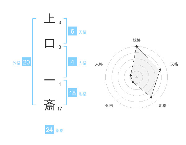 上口 一斎さんの総格は24画の5点!