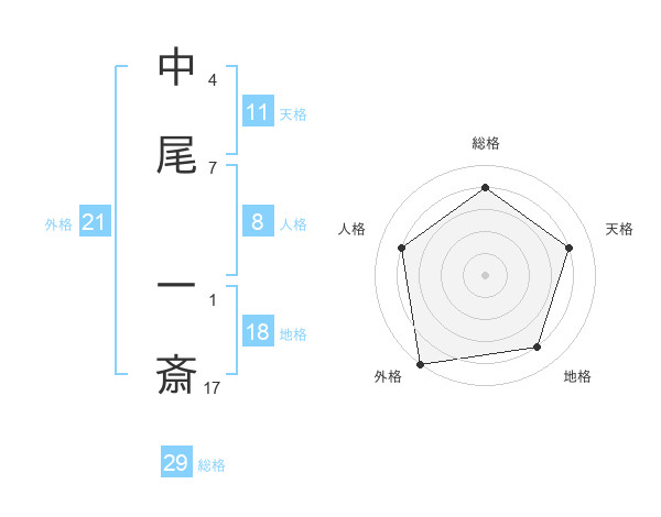 中尾 一斎さんの総格は29画の4点!