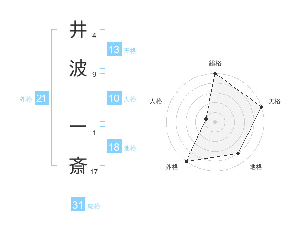 井波 一斎さんの天格は13画の5点!