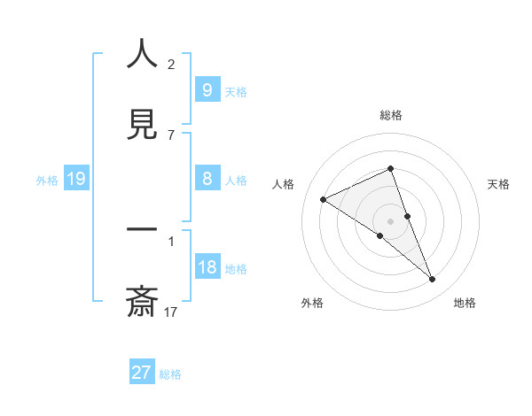 人見 一斎さんの総格は27画の3点!