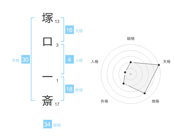 塚口 一斎さんを姓名の画数から五運を鑑定