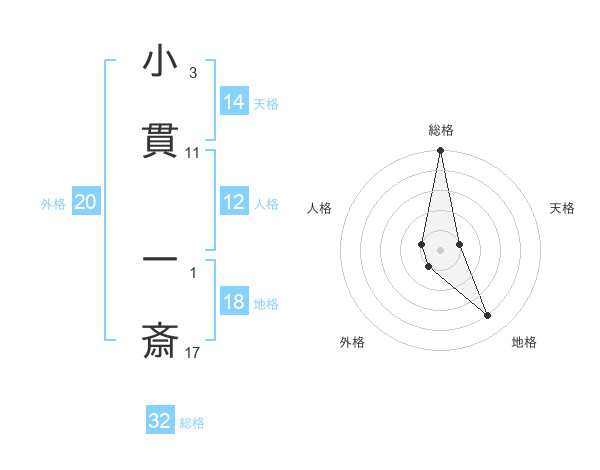 小貫 一斎さんの総格は32画の5点!