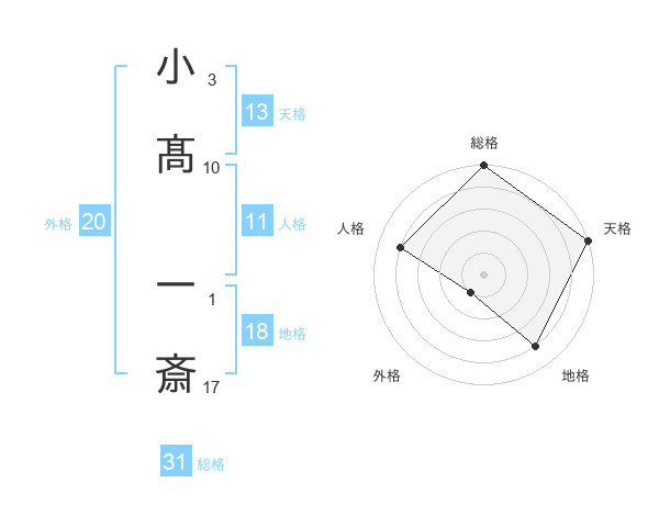 小髙 一斎さんの総格は31画の5点!
