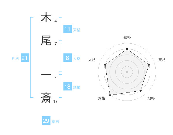 木尾 一斎さんの総格は29画の4点!
