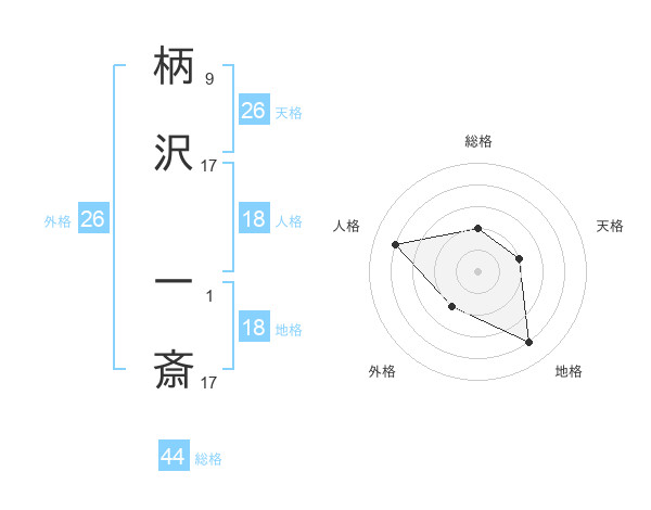 柄沢 一斎さんを姓名の画数から五運を鑑定
