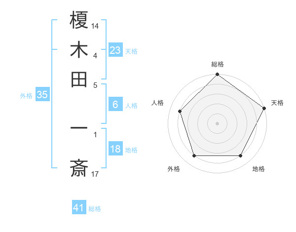 榎木田 一斎さんの総格は41画の5点!