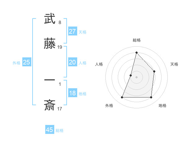 武藤 一斎さんを姓名の画数から五運を鑑定