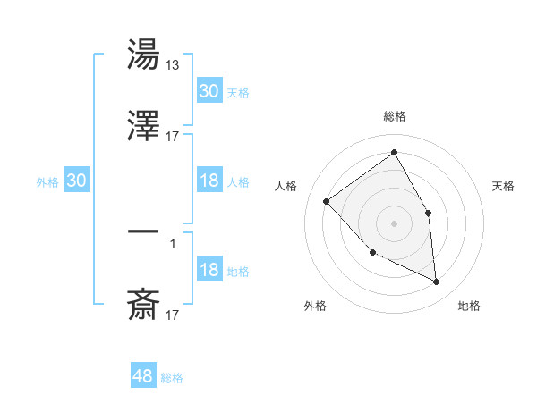 湯澤 一斎さんの総格は48画の4点!