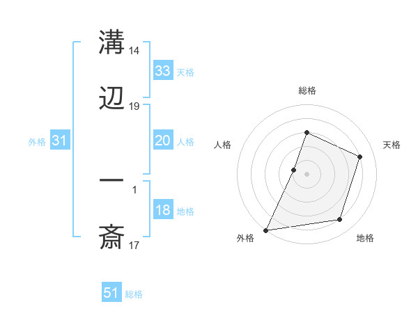 溝辺 一斎さんの総格は51画の3点!