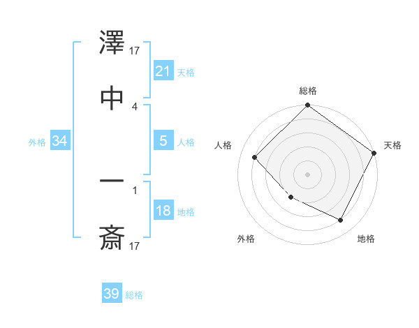 澤中 一斎さんを姓名の画数から五運を鑑定